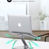 The laptop stand can raise your laptop up to 7.48 inches. You can incline at different angles and stand it up higher or lower depending on your needs, which will be extremely convenient if you use your laptop in a variety of position. In addition, it is foldable for easy storage and easy to carry. With quality aluminum alloy material, the adjustable laptop stand is more sturdy and durable. It can support up to 8.8 lbs (4 kg) without shaking the panel. The panel and its two hooks are designed with non-slip straps to make the laptop riser more stable, and 4 non-slip silicone pads at the bottom help prevent the computer riser from sliding. These considerate designs are to ensure you better use. The laptop holder only has two holder hands but not a whole flat, so there is more space to enable the heat to vent and keep your laptop from overheating.